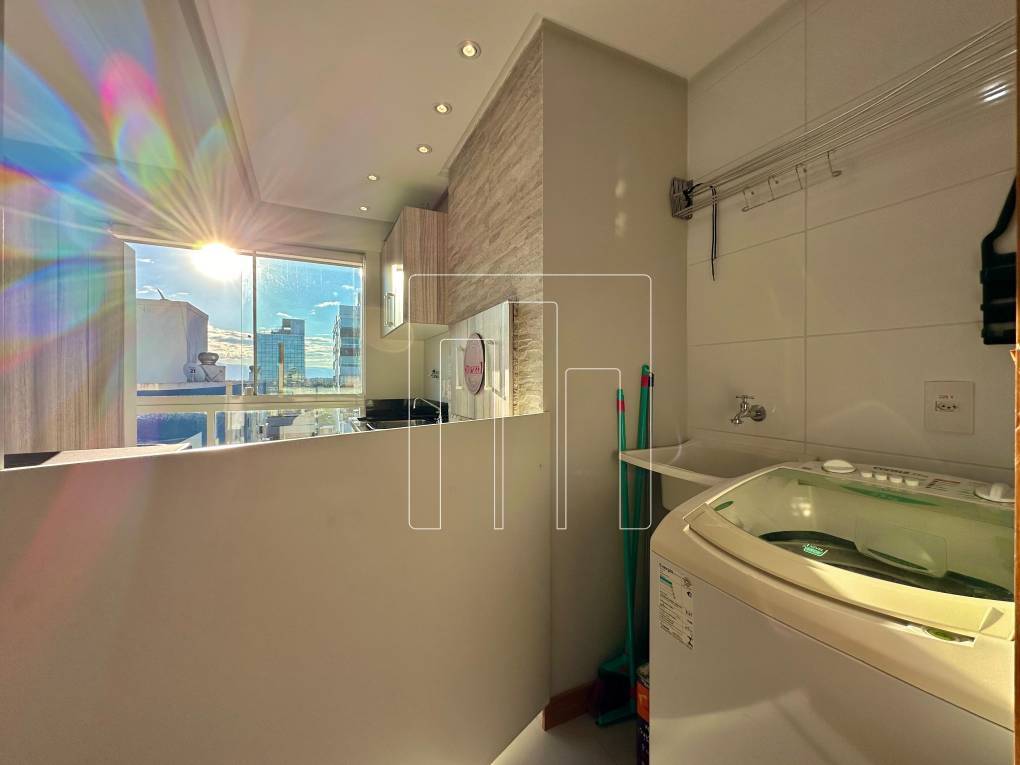 O apartamento conta com uma cozinha equipada com micro-ondas e uma área de serviço com máquina de lavar roupas. A sacada de frente é fechada e possui uma churrasqueira, ideal para momentos de lazer.