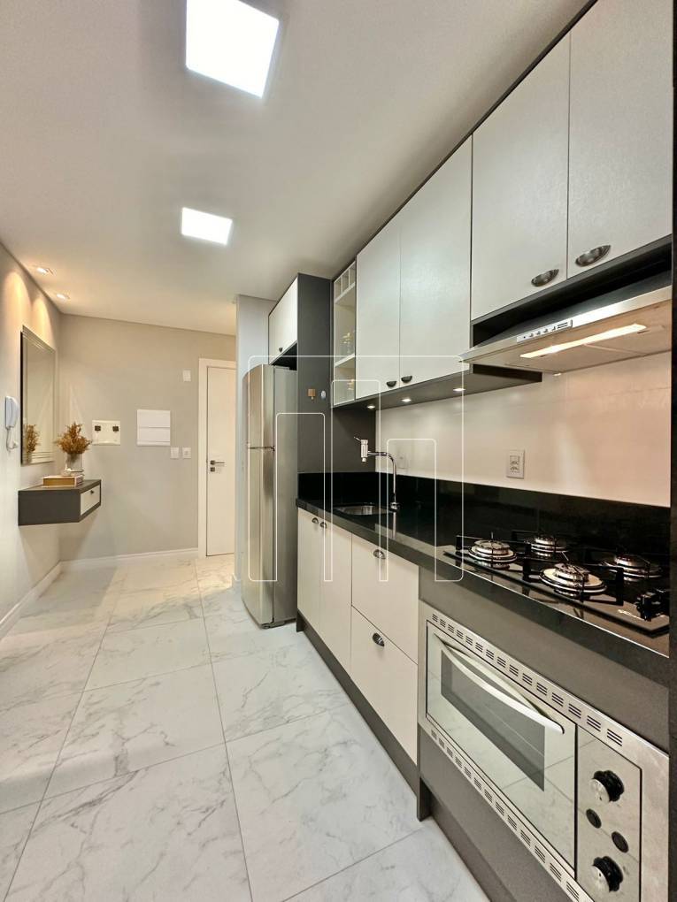 A cozinha completa conta com micro-ondas e forno elétrico, e a lavanderia está pronta para uso com máquina de lavar roupas. O apartamento dispõe também de banheiro social, dois box de estacionamento, telas mosquiteiras para garantir noites tranquilas, ar condicionado split no quarto e na suíte, água quente e gás central, tornando sua estadia ainda mais confortável.