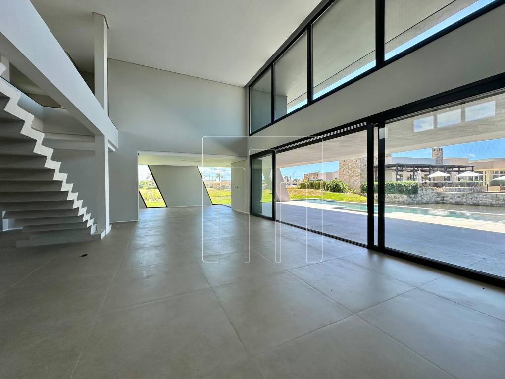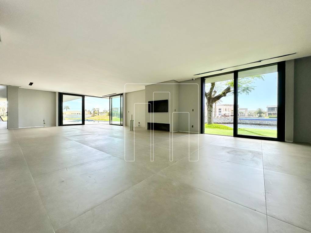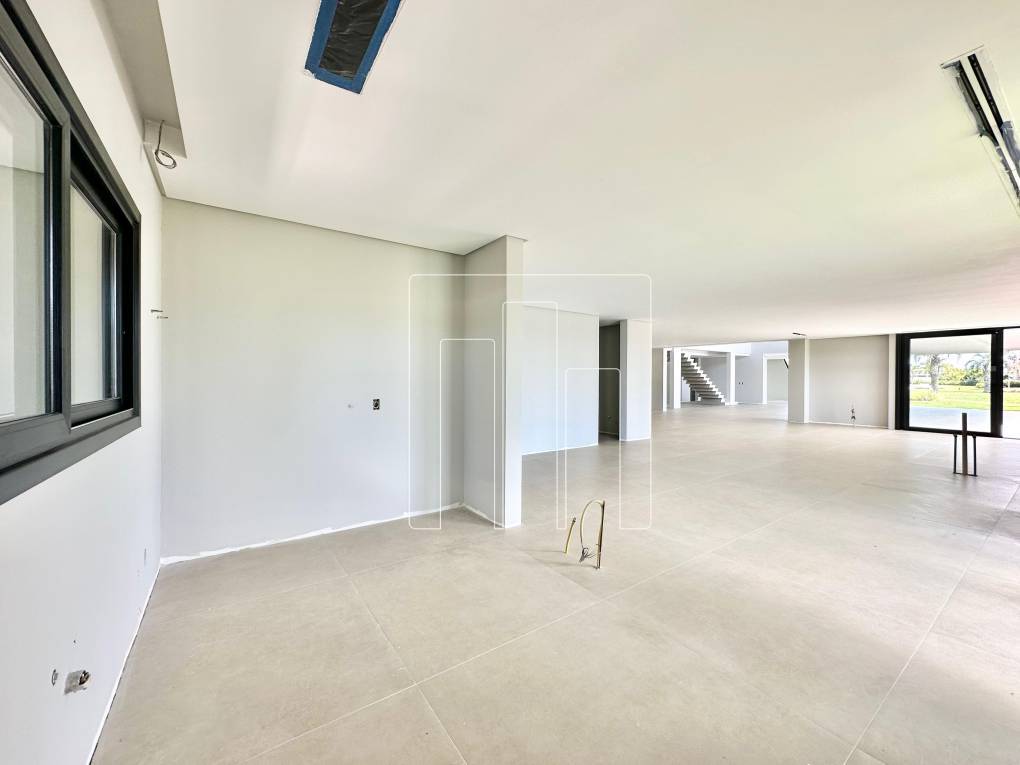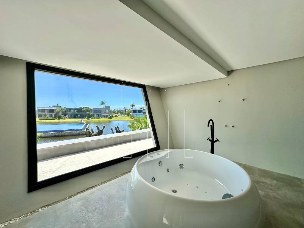 Esta mansão é um verdadeiro sonho, localizada em um terreno de esquina com mais de 1.100m², rodeada por área verde e vizinha ao clube. Com 950m² de área construída, ela oferece espaços amplos e bem planejados para proporcionar conforto e sofisticação. São 05 suítes, incluindo uma master com hidromassagem, além de um escritório que pode se transformar em uma sexta suíte. O living, com impressionantes 241m², é dividido em 06 ambientes distintos, ideal para receber convidados ou aproveitar momentos em família. A copa cozinha, com 38m², é prática e funcional, complementada por dois lavabos, lavanderia fechada e dependência de empregada. O abrigo comporta até três carros, e o porte-cochère é um charme à parte. A varanda coberta de frente para o lago, com 70m², proporciona um espaço único para relaxar. Entre os diferenciais, a casa conta com elevador, área para gatil ou canil, e uma piscina aquecida de concreto com spa. A tecnologia é um ponto forte, com automação completa para áudio, vídeo, som ambiente e rede, além de sistema de ar-condicionado central. A sustentabilidade está presente com geração de energia solar e aquecimento solar na piscina, ambos da SolarHaus. A área íntima é revestida com piso vinílico, e o sistema de impermeabilização do telhado e lajes técnicas oferece garantia e segurança. Uma mansão que combina elegância, modernidade e conforto em um só lugar.