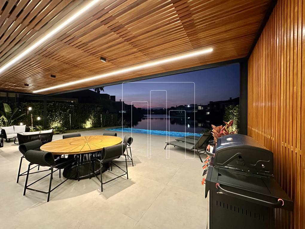 Sobrado à venda no Condomínio Enseada, em Xangri-Lá, com uma vista deslumbrante para o lago. Com uma área construída de 457, 45 m², o imóvel conta com 6 suítes, sendo uma delas uma suíte master com closet e banheira. O sobrado possui dependência de empregada, lavabo, acabamento de alto padrão, e está finamente decorado e completamente mobiliado. Para maior comodidade, há um elevador instalado. Localizado à beira do lago, o paisagismo é impecável, com sistema de irrigação automática. A área externa conta com uma piscina de concreto aquecida e com tratamento de sal, além de um pergolado de 42 m², perfeito para momentos de lazer. A automação parcial das luzes proporciona um toque moderno e prático. Entre em contato e solicite mais informações!