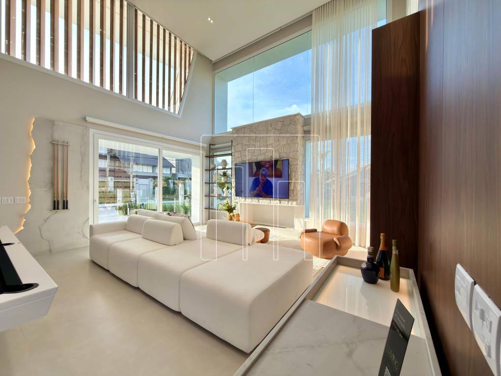 Uma residência que impressiona em cada detalhe, unindo sofisticação, tecnologia e conforto em um só lugar. São 4 suítes individuais, sendo 1 máster, distribuídas em 305m² de área construída sobre um terreno. Totalmente mobiliada e decorada, conta com living de pé-direito alto e excelente iluminação natural, além de automação completa via protocolo Zigbee integrada à Alexa. O espaço gourmet possui som ambiente, enquanto a cozinha se destaca pelas pedras em Mont Blanc escovado e depurador embutido. O conforto segue com sofá de regulagem motorizada, persianas automatizadas, ar-condicionados e televisores Samsung, além de um sofisticado projeto luminotécnico com telas tensionadas. Para momentos de relaxamento, a casa oferece banheira de imersão com vista contemplativa para o espelho d’água. Localizada em Atlântida/RS. Entre em contato e agende sua visita!