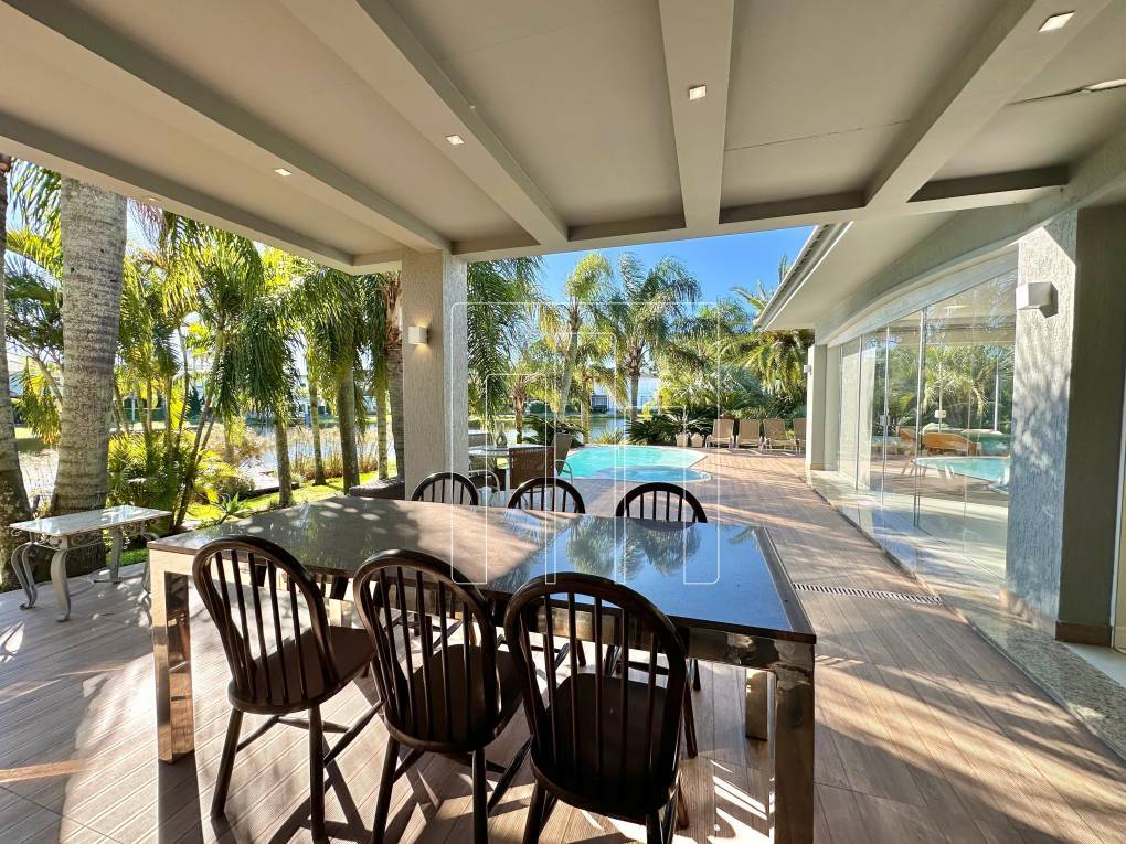 Residência deslumbrante à venda em localização privilegiada, com projeto imponente e pensado para proporcionar conforto, lazer e sofisticação em cada detalhe. Com 430 m² de área construída em um terreno de 624 m², essa casa oferece 05 suítes (sendo 01 suíte master com hidromassagem), lavabo, ambientes amplos, finamente mobiliados e decorados, além de um espaço gourmet com bancada americana que integra perfeitamente o convívio entre família e amigos. A área externa é um verdadeiro refúgio particular: piscina com hidromassagem e aquecimento elétrico, área gourmet completa, paisagismo planejado com iluminação especial, sistema de som ambiente interno e externo, além de 2 trapiches privativos e fundos com 26 metros voltados para o lago, em uma das alamedas mais bonitas da ilha. Conta ainda com área de serviço independente e dependência de empregada. Uma propriedade única, com localização ímpar e perfeita para quem busca qualidade de vida, exclusividade e contato com a natureza em alto estilo. Agende sua visita e encante-se com essa oportunidade exclusiva!