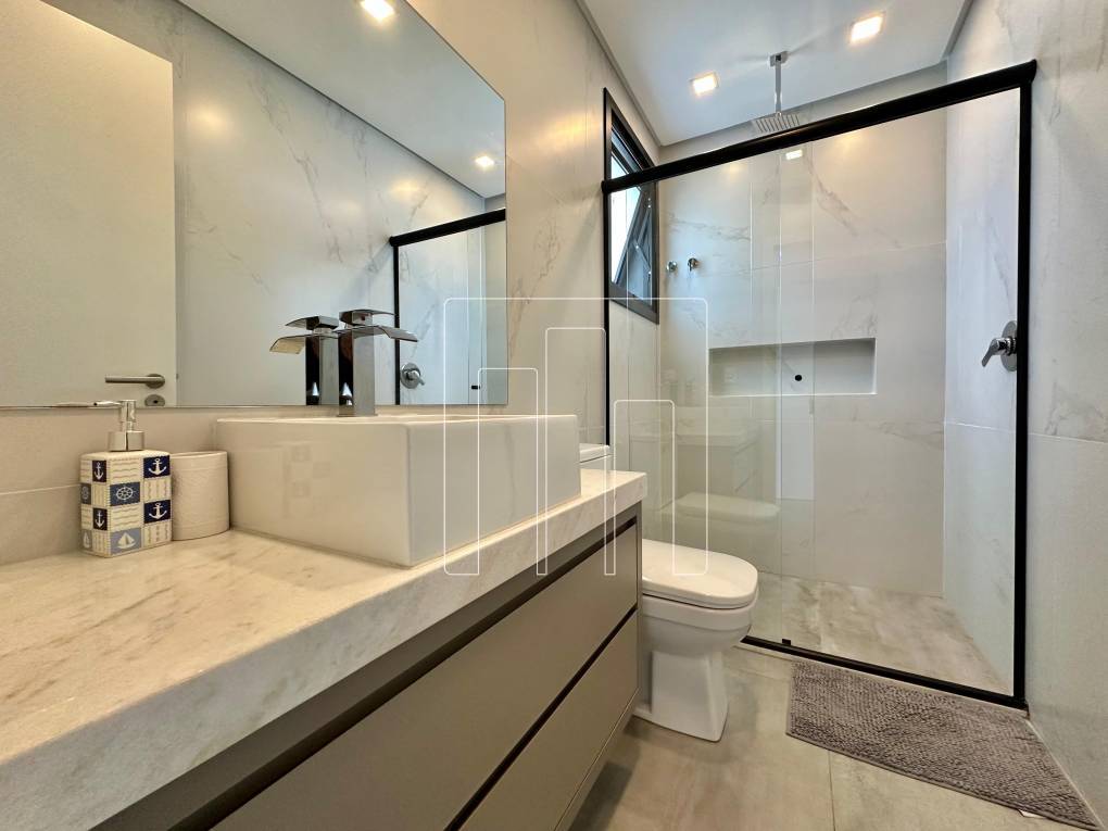 Sinta o privilégio de viver em um dos endereços mais desejados do Condomínio. Este sobrado de alto padrão foi construído à beira do lago, em um terreno com 270 m², unindo elegância, conforto e integração perfeita com a natureza. São 4 suítes amplas e sofisticadas, com uma suíte master que oferece o máximo de conforto. O projeto moderno valoriza a luz natural e o contato com o exterior, com porta de correr de abertura total, conectando os ambientes de forma fluida. A área social é um convite à convivência: cozinha gourmet completa, banheiro externo, piscina de concreto com deck em madeira e um paisagismo encantador, emoldurado por uma oliveira de 20 anos e um projeto luminotécnico que transforma as noites em um espetáculo à parte. A fachada combina pedras naturais e brises de louro freijó, refletindo o padrão de excelência e bom gosto da construtora, que ainda oferece garantia de construção. Um verdadeiro refúgio de luxo, onde cada detalhe foi pensado para proporcionar uma experiência única de conforto e exclusividade. Agende sua visita e surpreenda-se!