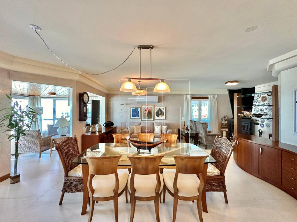 Apartamento à venda com vista para o mar, situado em um andar exclusivo, com total privacidade. Com 193, 98 m² de área privativa, o imóvel conta com 05 dormitórios, sendo três suítes, incluindo uma suíte master com closet. O living é integrado, garantindo amplitude e funcionalidade aos ambientes. O apartamento é totalmente climatizado, possui lareira e esquadrias de PVC da marca Weiku, com acabamentos internos em madeira Louro Freijó. Todos os móveis fixos permanecem no imóvel, porém, os móveis soltos e decorativos não estão incluídos na venda. Para maior comodidade, o apartamento dispõe de três boxes de garagem e um depósito privativo. Localizado no bairro Centro, na Avenida Beira Mar. Agende sua visita agora mesmo!