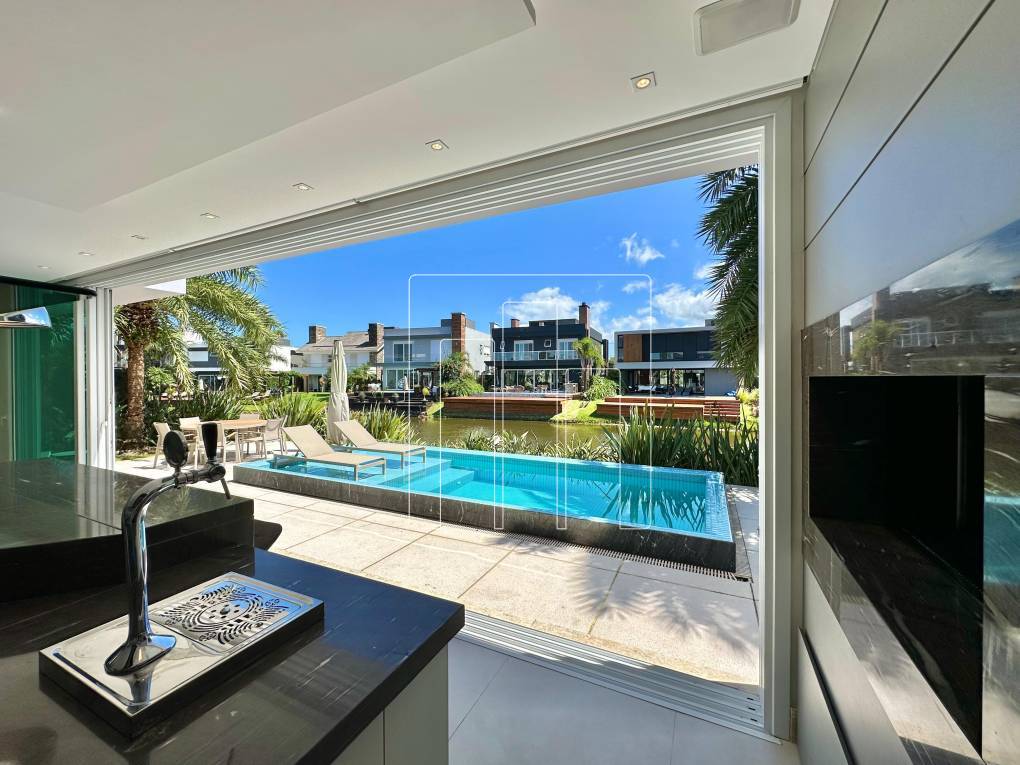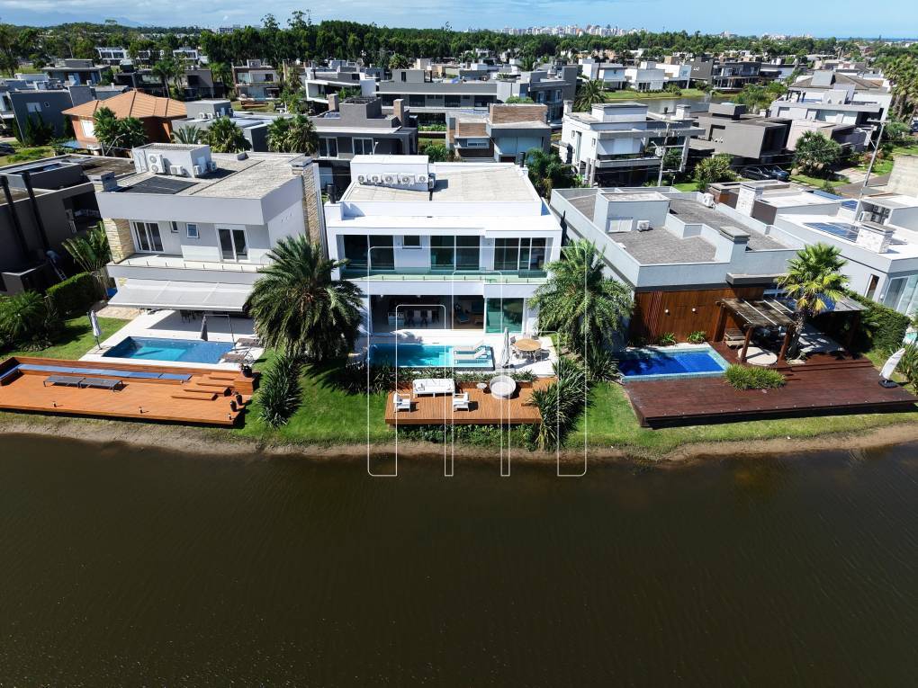 Encantador sobrado à beira do lago, localizado no desejado Condomínio Malibu. Com uma área de 372, 74 m², este imóvel mobiliado oferece conforto e sofisticação em cada detalhe. São 05 amplas suítes, incluindo uma máster, garantindo privacidade e comodidade para toda a família. O living, distribuído em 04 ambientes, proporciona um espaço acolhedor e versátil, enquanto a cozinha integrada com churrasqueira convida para momentos especiais. Persianas automatizadas, lareira ecológica e um elegante lavabo complementam o ambiente com modernidade e praticidade. A área externa conta com uma piscina de concreto aquecida e um deck de madeira com fundos para o lago, criando um cenário perfeito para relaxar e apreciar a vista. O imóvel ainda dispõe de área de serviço, abrigo para carros e climatização completa. Entre em contato para mais informações ou agendar uma visita.