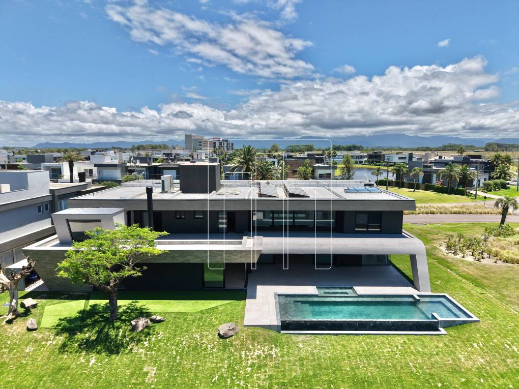 Esta mansão é um verdadeiro sonho, localizada em um terreno de esquina com mais de 1.100m², rodeada por área verde e vizinha ao clube. Com 950m² de área construída, ela oferece espaços amplos e bem planejados para proporcionar conforto e sofisticação. São 05 suítes, incluindo uma master com hidromassagem, além de um escritório que pode se transformar em uma sexta suíte. O living, com impressionantes 241m², é dividido em 06 ambientes distintos, ideal para receber convidados ou aproveitar momentos em família. A copa cozinha, com 38m², é prática e funcional, complementada por dois lavabos, lavanderia fechada e dependência de empregada. O abrigo comporta até três carros, e o porte-cochère é um charme à parte. A varanda coberta de frente para o lago, com 70m², proporciona um espaço único para relaxar. Entre os diferenciais, a casa conta com elevador, área para gatil ou canil, e uma piscina aquecida de concreto com spa. A tecnologia é um ponto forte, com automação completa para áudio, vídeo, som ambiente e rede, além de sistema de ar-condicionado central. A sustentabilidade está presente com geração de energia solar e aquecimento solar na piscina, ambos da SolarHaus. A área íntima é revestida com piso vinílico, e o sistema de impermeabilização do telhado e lajes técnicas oferece garantia e segurança. Uma mansão que combina elegância, modernidade e conforto em um só lugar.